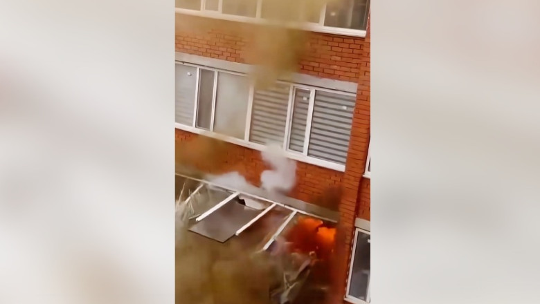 Explozia a avut loc în timpul luptei cu incendiul care mistuia un apartament din Ural. În momentul deflagrației, un pompier era poziționat la fereastra apartamentului, iar izbucnirea violentă a rupt complet interiorul locuinței, aruncând resturi și flăcări în exterior.